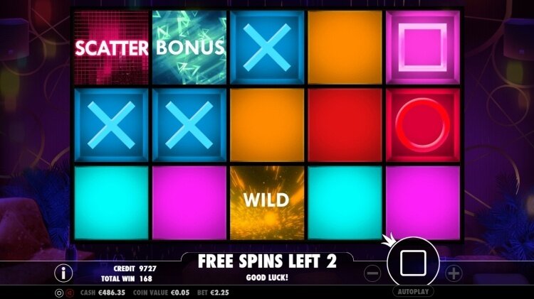 De symbolen in het spel zijn: een ster, vierkant, kruis, cirkel en een blauw, oranje, roze en rood vierkant blok. De gekleurde blokken leveren je het minst op, namelijk 3,33X tot 6,66X je inzet bij 5 symbolen. De cirkel levert je bij 5 symbolen 13,33X je inzet op, het kruis 33,33X, het vierkantje 53,33X je inzet en de ster maar liefst 666,66X je inzet.