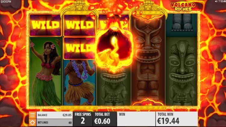 De vulkaan spuugt niet alleen vuur, maar ook tot 5 wilds, die op willekeurige plekken op de rollen kunnen vallen. Die wilds kunnen overigens ook weer andere wilds aansteken.