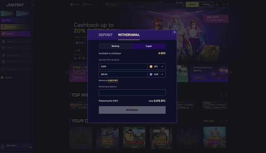 - Eenvoudige cashback: De cashback bonus van JustBit is simpel en rechttoe rechtaan zonder inzetvereisten!